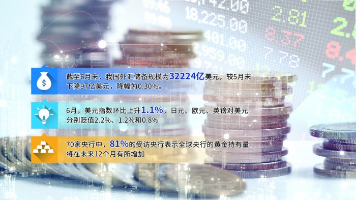 在估值效应因素一负一正的综合作用下,6月我国外储规模小幅回落。国家外汇管理局7月7日发布数据显示,截至6月末,我国外汇储备规模为32224亿美元,较5月末下降97亿美元,降幅为0.30%。